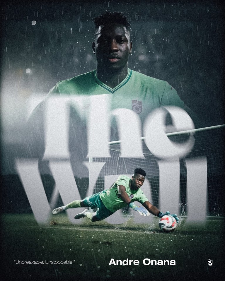 André Onana a désormais un nouveau nom en Turquie. Il faudra désormais l’appeler « THE WALL »qui signifie le mur. C’est le nom que lui a attribué Trabzonspor après sa performance héroïque lors de la victoire 2-0 face à Eyüspor. L’international camerounais de 29 ans a réalisé 4 arrêts decisifs permettant aux siens de s’imposer de conserver leurs cages inviolées pour la deuxième fois depuis son arrivée en dans le club.